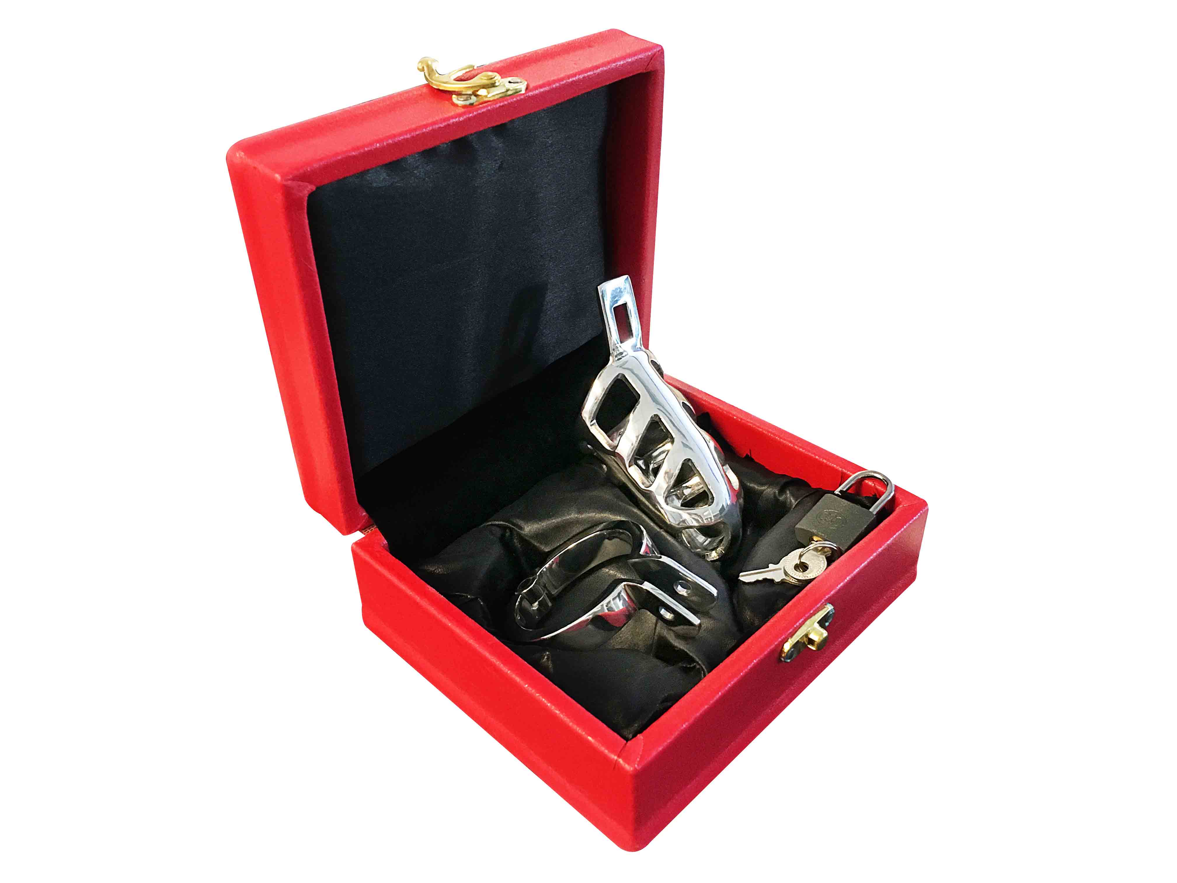 Ein schöner und dicker Edelstahl-Keuschheitskäfig.