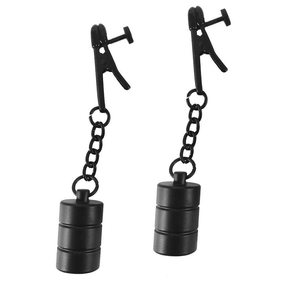 Diese schwarzen, schweren Nippelklemmen wurden für Ihr intensives Gefühlsspiel entwickelt. Wenn Sie die optionalen Gewichte verwenden, können Sie Ihre eigenen oder die Ihres Partners testen. Jedes Gewicht wiegt 150 g. und wird an deinem empfindlichen Nippel so ziehen, wie du es liebst. Vervollkommnen Sie für den Masochisten, der etwas mehr Schmerz mit ihrem Vergnügen wünscht.