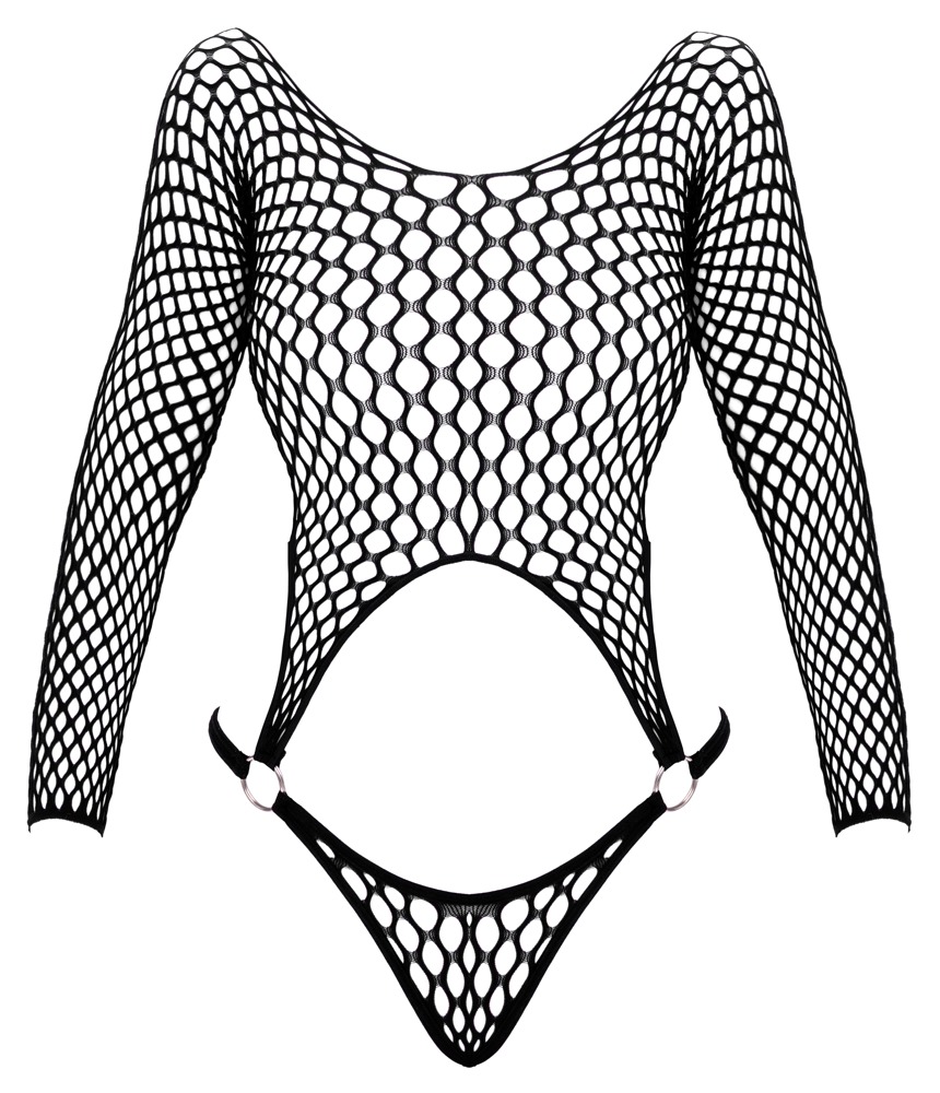 Schwarzer Netzbody von Fantasy by Cottelli mit modisch großen Maschen. In raffinierter Zweiteiler-Optik, wobei vorne Langarm-Top und Riostring mit 2 dekorativen, silberfarbenen Ringen fest verbunden sind. Hohe Beinausschnitte setzen Po und Beine perfekt in Szene. Rundum hochelastisch und weich anschmiegsam für besten Tragekomfort.