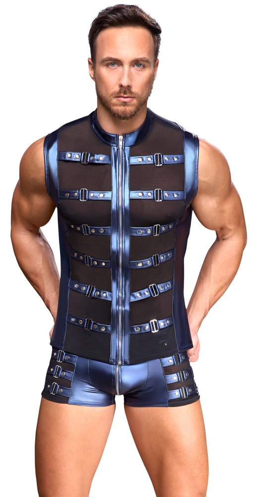 NEK Pants schwarz-blau mattlook mit Riemen Cooler detailverliebter Style! Enge betonende Pants... mehr