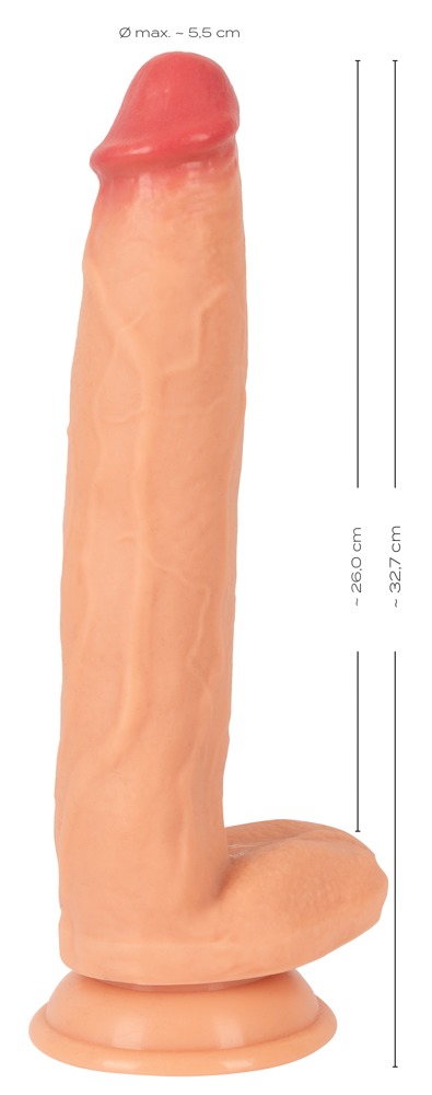 Prächtiger Dildo Real Giant von Realistixxx in hyperrealistischer Penisoptik aus Dual Density Liquid Silikon. Mit seiner Eichel, der ausgeprägten Äderung und dem Hodenansatz sieht er aus wie ein lebensechter Penis. Und fühlt sich auch so an – wie echte Haut. Dabei aufregend steif und stark, ohne an Flexibilität zu verlieren. So macht er jede Stellung mit! Der kiloschwere Real Giant steht mit seinem Gewicht fest und sicher auf seinem Saugfuß, um auch freihändig bespielt zu werden.