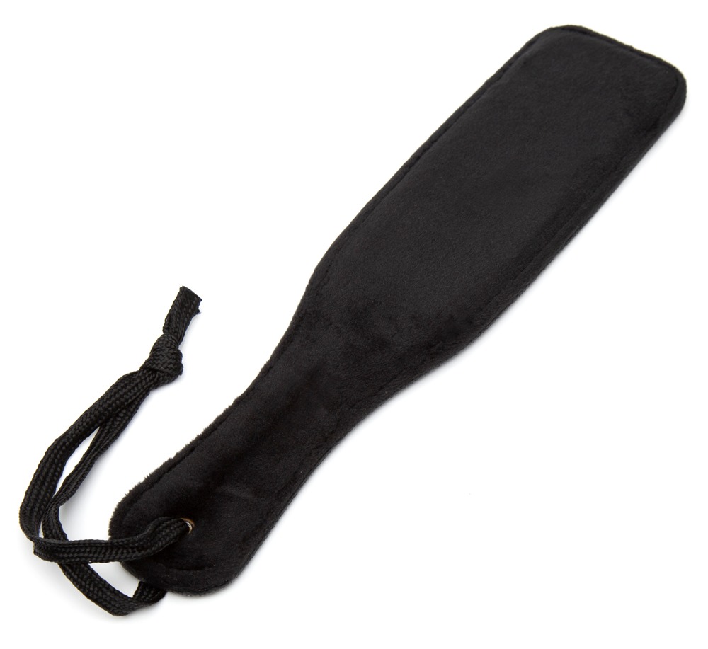 Kleines handliches, hochwertiges Schlagpaddel Bound to You Small Paddle von Fifty Shades of Grey mit unterschiedlichen Schlagseiten für vielseitige Empfindungen von zart bis hart: Eine Seite seidig softer Velours (zum Streicheln), andere Seite stilvolles glattes Lederimitat (zum Schlagen). Mit Hand-/Aufhängeschlaufe.