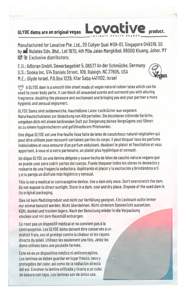Die GLYDE Dams VANILLA bieten zuverlässigen, hygienischen Schutz und hohen Komfort beim Oralverkehr. Die veganen, cremefarbenen Lecktücher aus Naturkautschuklatex sind hauchdünn und seidenweich für ein gefühlsechtes, komfortables Erlebnis. Mit einer großzügigen Größe von 25 x 15 cm bieten die Schutztücher eine umfassende Abdeckung beim Cunnilingus und Rimming. Das dezente Vanille-Aroma unterstreicht dabei mit warmer sinnlicher Note den ganz besonderen Moment. Für maximale Hygiene sind die Lecktücher einzeln verpackt und in der praktischen, runden Box schnell einsatzbereit.