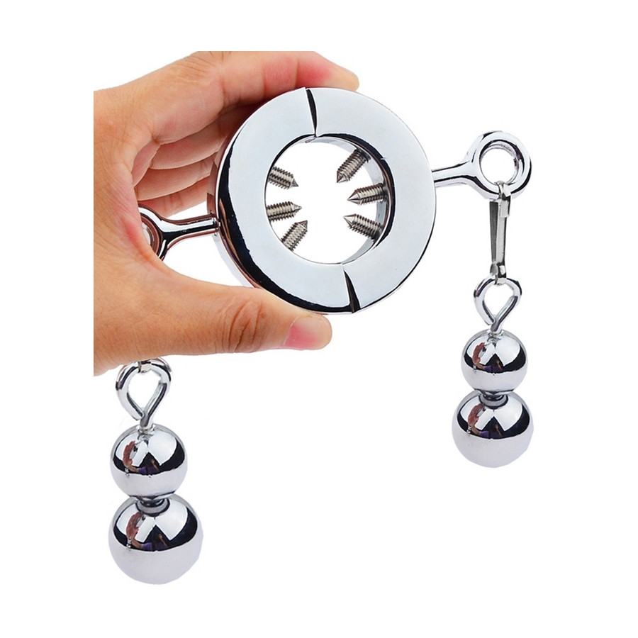 Der Hodenstrecker mit Gewichten und Spikes ist perfekt für wilde SM-Spiele.
