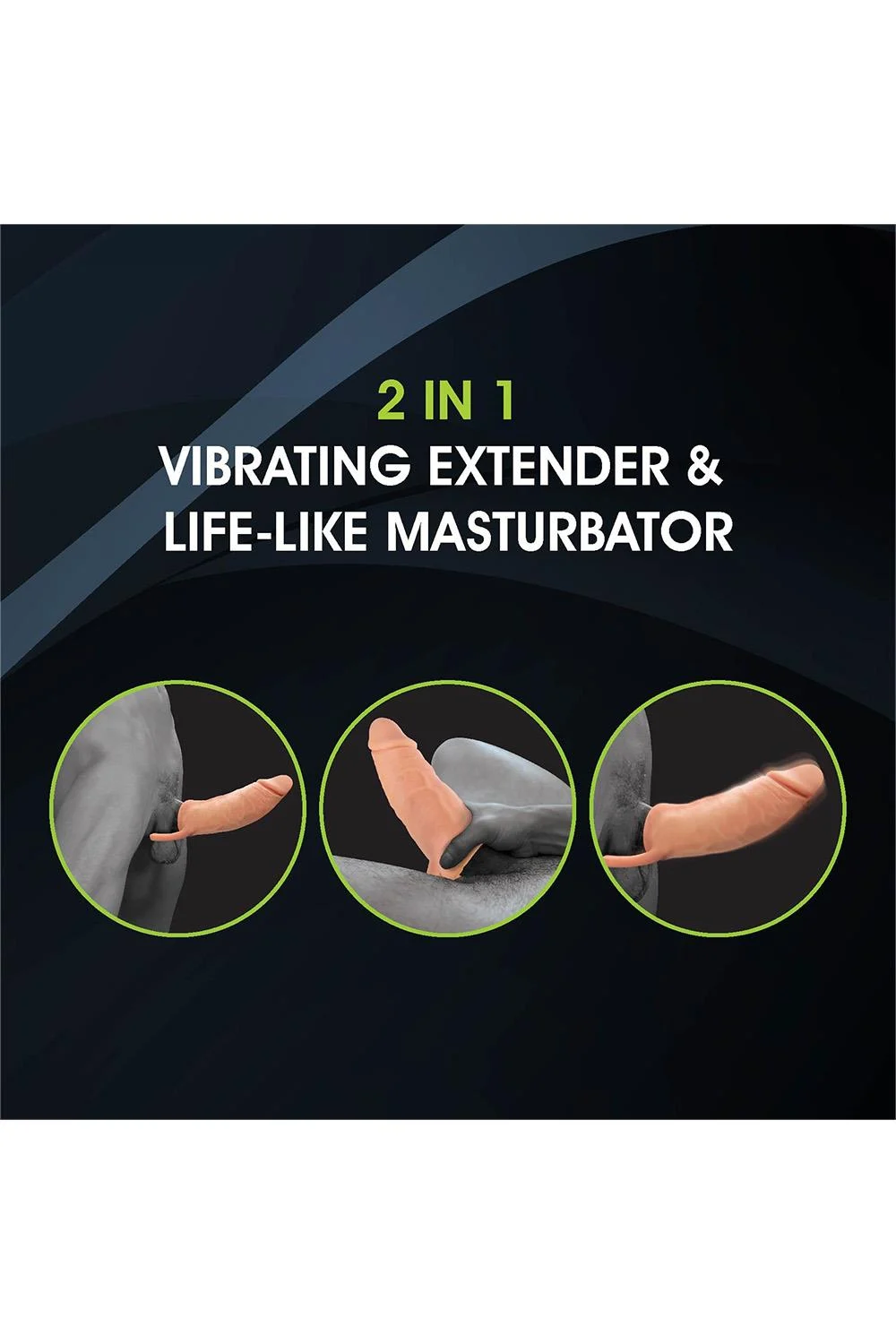 Der neue 2-in-1 Extender+ ist als Penisverlängerungshülse mit einem flexiblen Ring um die Hoden konzipiert, der die Hülse fest am Penis befestigt, um den Spaß am Sex zu steigern. Er funktioniert auch als Masturbator mit einem realistischen, weichen und engen, knotigen Tunnel. Er bietet intensive und ultimative Stimulation für Solospiele.