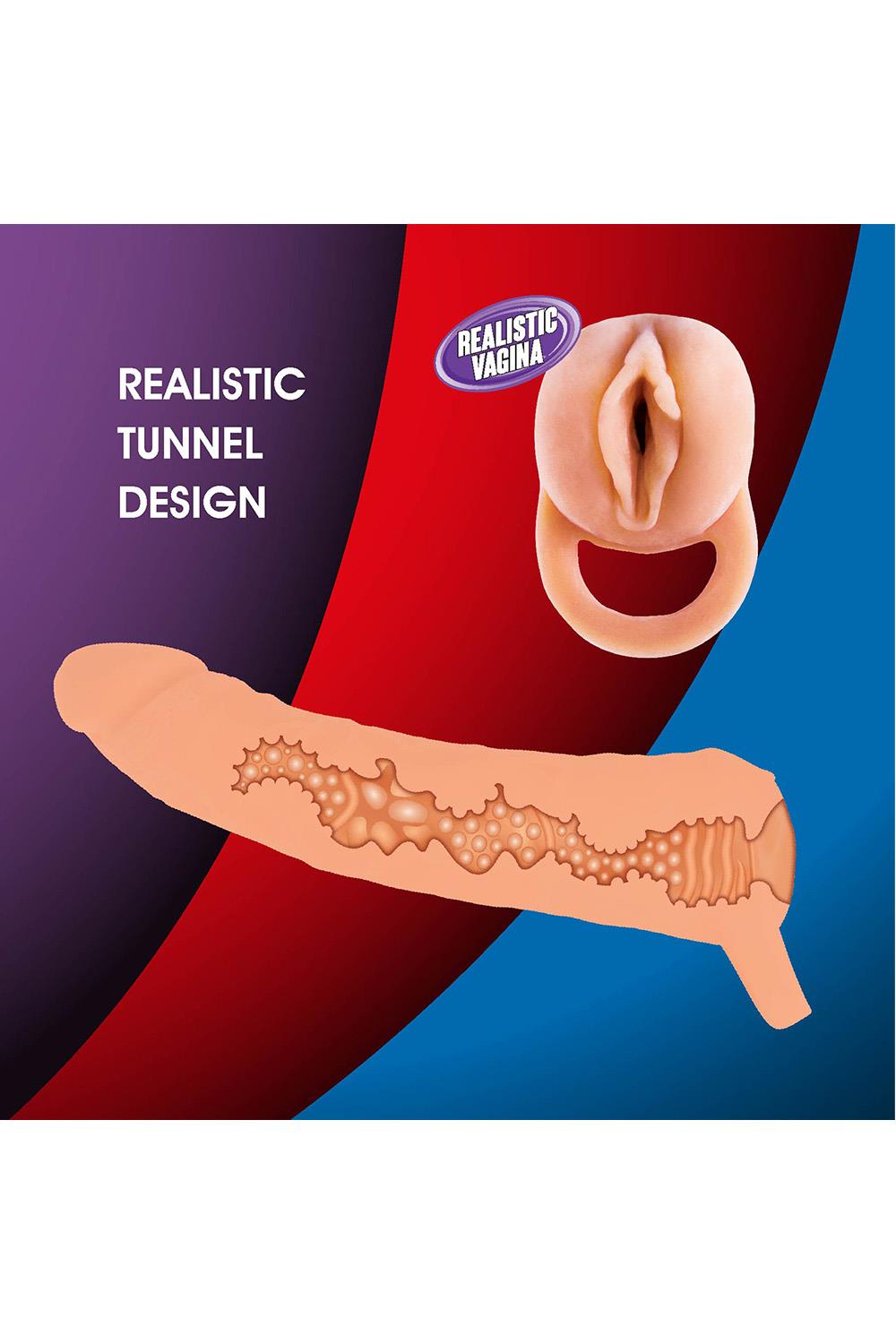 Der neue 2-in-1-Extender ist als Penisverlängerungshülle konzipiert, um Ihren Sex mit Ihrem Partner noch mehr zu genießen. Die Hülle funktioniert wie ein hohler Umschnalldildo, der Ihnen helfen kann, länger durchzuhalten, bevor Sie ejakulieren. Dieses Produkt ist auch als Masturbator mit einer realistischen Muschi konzipiert. Es bietet einen weichen und engen, knotigen Tunnel, der intensive und ultimative Stimulation für Solospiele bietet.