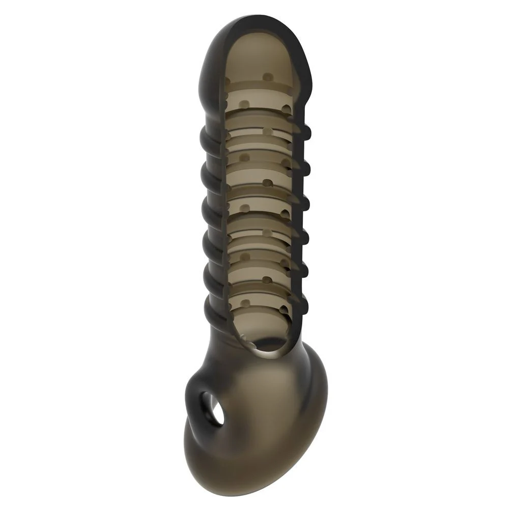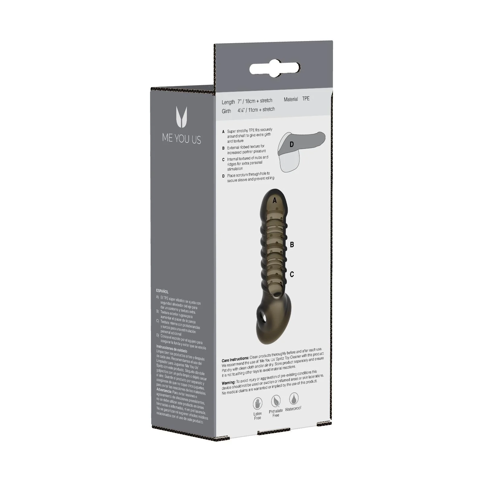 Der Me You Us Emperor Penis Sleeve – Smoke ist eine flexible, komfortable Hülle aus phthalatfreiem TPE, die zur Erweiterung des Penis entwickelt wurde. Durch das dehnbare Material passt sich der Sleeve verschiedenen Größen an, lässt sich leicht anlegen und sitzt stabil dank der Öffnung für den Hodensack. Die strukturierte Oberfläche mit Rippen und Noppen ist sowohl innen als auch außen platziert und sorgt für ein vielseitiges Erlebnis. Das Modell in edlem Rauch‑Schwarz vereint Funktionalität mit unaufdringlichem Design und ist eine langlebige Ergänzung für dein Sortiment an Intimzubehör.