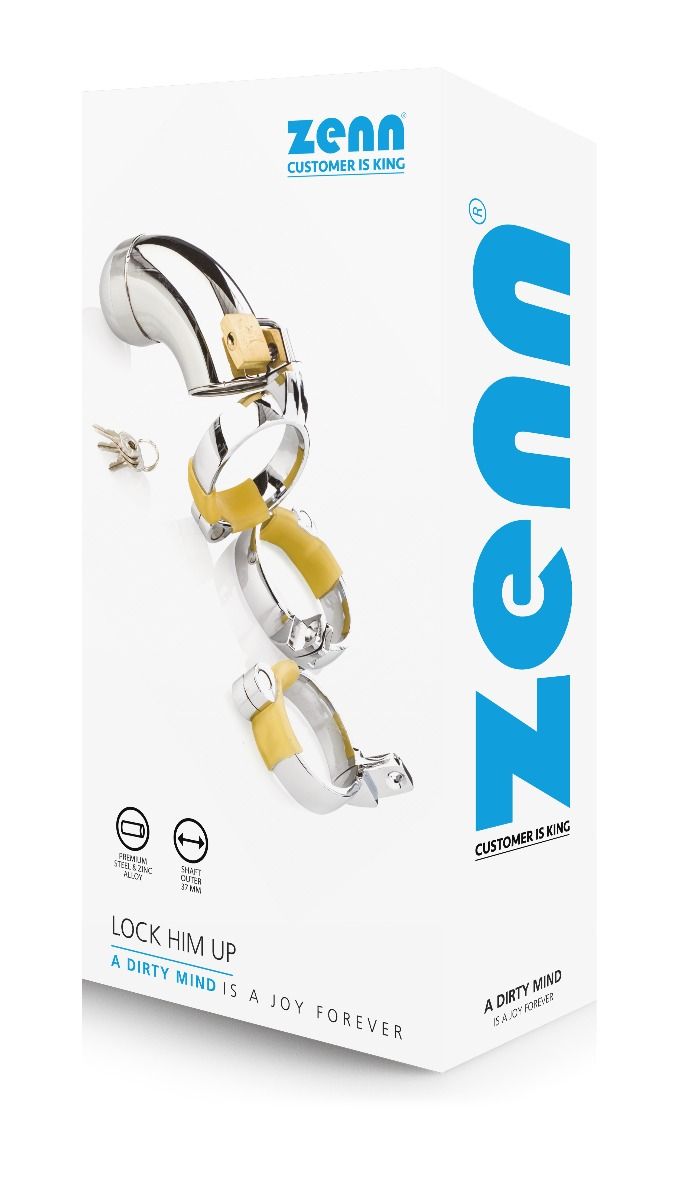 Dieser geschlossene, glänzende Peniskäfig jat eine Gesamtlänge von 115 mm, was bedeutet, dass ein schlaffer , gekrümmter Schwanz mit einer Länge von ca. 115 mm hineinpasst. Der Innendurchmesser des Peniskäfigs beträgt 35 mm und die Wandstärke beträgt gerade einmal 2 mm. Der Innendurchmesser der drei separaten, aber anschraubbaren Penisringe beträgt 40, 45 und 50 mm und diese haben eine Höhe von 14 mm. Ihre Wandstärke beträgt 5 mm. Der Peniskäfig alleine wiegt 72 g, das Gesamtproduktgewicht beträgt 344 g. Der Peniskäfig ist aus Stahl, die Penisringe aus einer Zinklegierung.