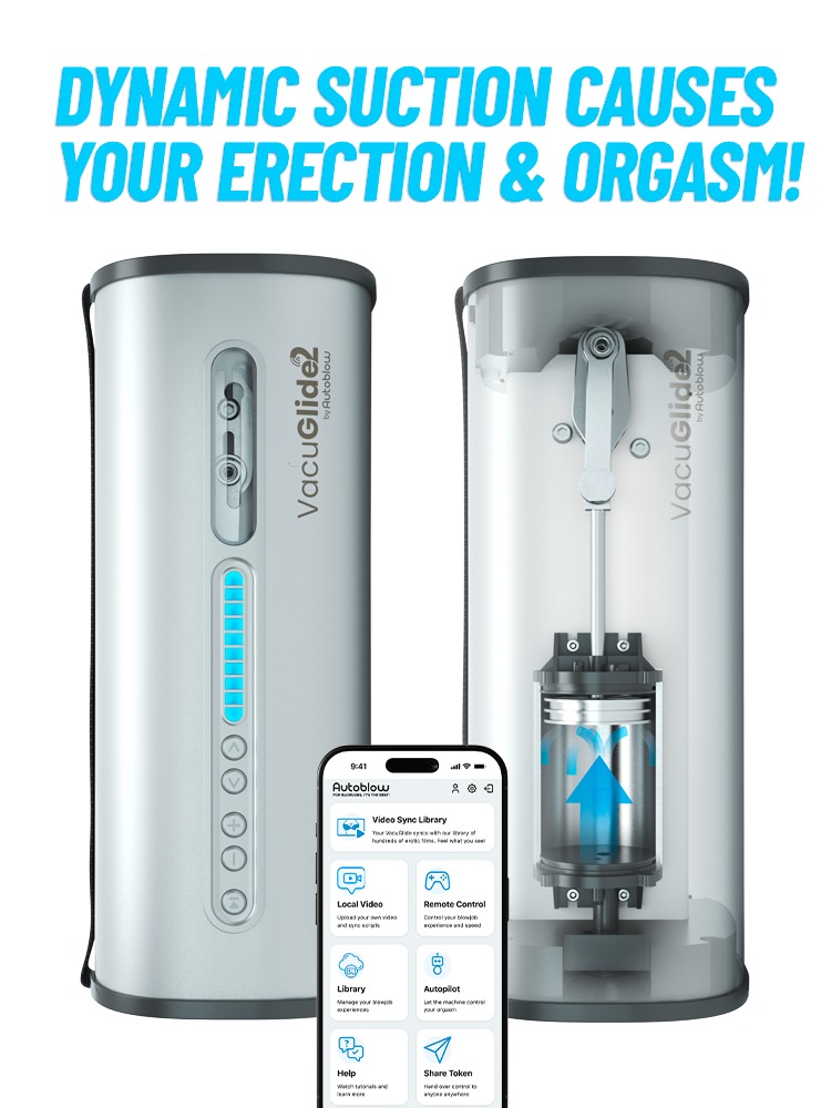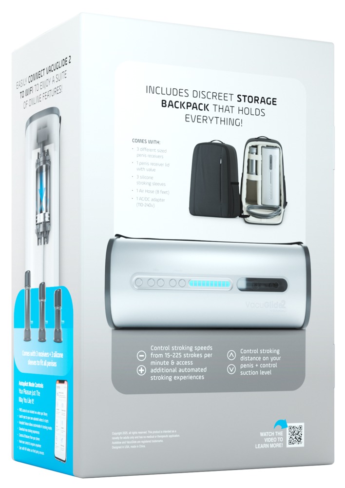 The VacuGlide 2 is now also controllable via app and synchronized with videos! It offers access to over 1,000 free VR videos – conveniently via smartphone, tablet or laptop. Additionally, the VacuGlide 2 can access a range of web-enabled features for free, such as remote control, downloadable blowjob experiences, custom autopilot modes, AI accompaniment for chat and control, as well as 20 built-in speeds and new hand/blowjob modes – from ultra-slow stroking motions to turbo top speed.