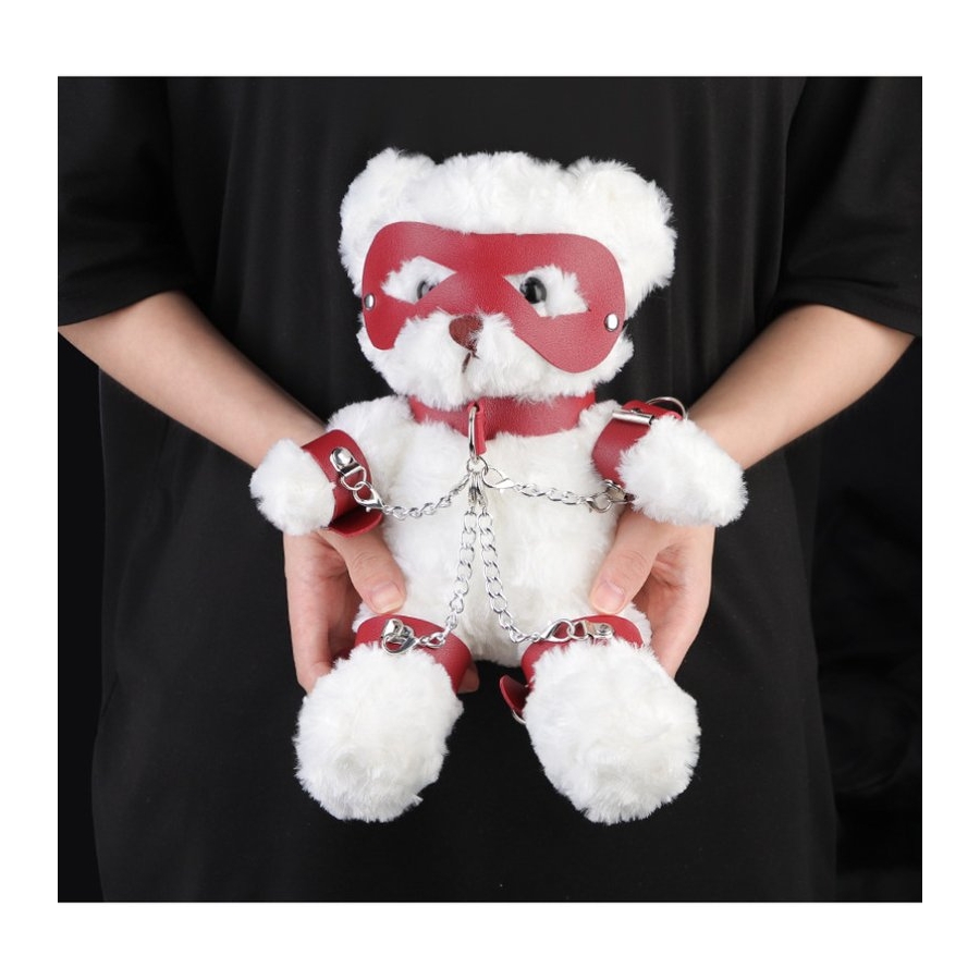BDSMAster Teddy Bear Plush Teddy Bear Bondage 31cm White White plush bear in dark red... more
