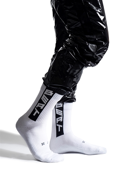 Complete your look with the branded t-shirts from Mister B BEAT or the shiny nylon track pants and jackets from Mister B BEAT.