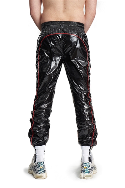 Stellen Sie sicher, dass Ihre Mister B BEAT Track Suit Pants nicht mit puderbasierten (Fisting-)Gleitmitteln und J-Jelly in Berührung kommt. Diese Gleitmittel greifen das Material der Trainingshose stark an. Wir raten Ihnen, die Mister B BEAT Track Suit Pants nicht während einer Fisting-Session zu tragen, bei der diese Gleitmittel verwendet werden. Waschen Sie anschließend Ihren Körper (Arsch, Arme usw.), damit alle Gleitmittelreste abgewaschen werden, bevor Sie die Mister B BEAT Track Suit Pants wieder anziehen.