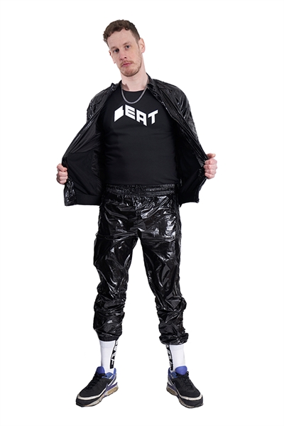 Stellen Sie sicher, dass Ihre Mister B BEAT Track Suit Jacket nicht mit puderbasierten (Fisting-)Gleitmitteln und J-Jelly in Berührung kommt. Diese Gleitmittel greifen das Material der Trainingsjacke ernsthaft an. Wir raten Ihnen, die Mister B BEAT Track Suit Jacket nicht während einer Fisting-Session zu tragen, bei der diese Gleitmittel verwendet werden. Waschen Sie anschließend Ihren Körper damit alle Gleitmittelreste abgewaschen werden, bevor Sie die Mister B BEAT Track Suit Jacket wieder anziehen.