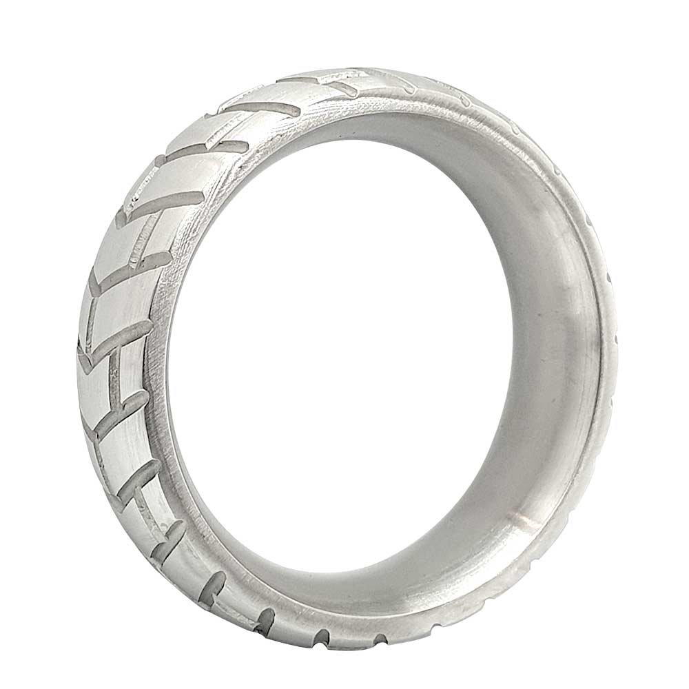 Men, keep your penis hard longer with the tire tread ring! Our cool tire tread rings will definitely delight tough riders! Dynamic steel ring with motorcycle tire design. If your passion has wheels, these rings are for you. In addition to the visually stunning "hoop" design, this ring helps men maintain a longer-lasting erection. The ring provides extra support and strength with a perfect fit.