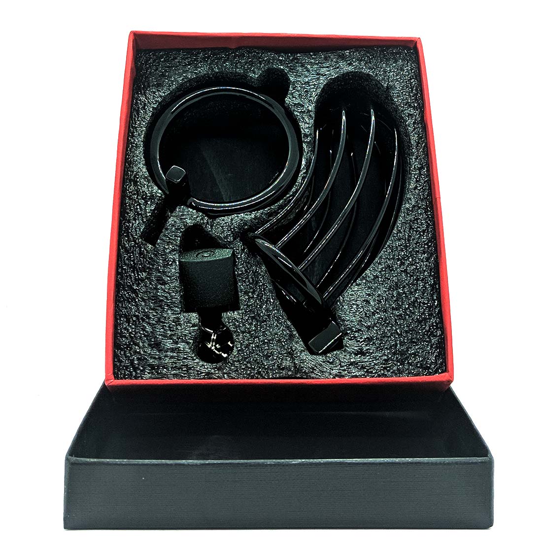 Black Label Outlined Chastity Cage with locking ring available in two sizes. ... more