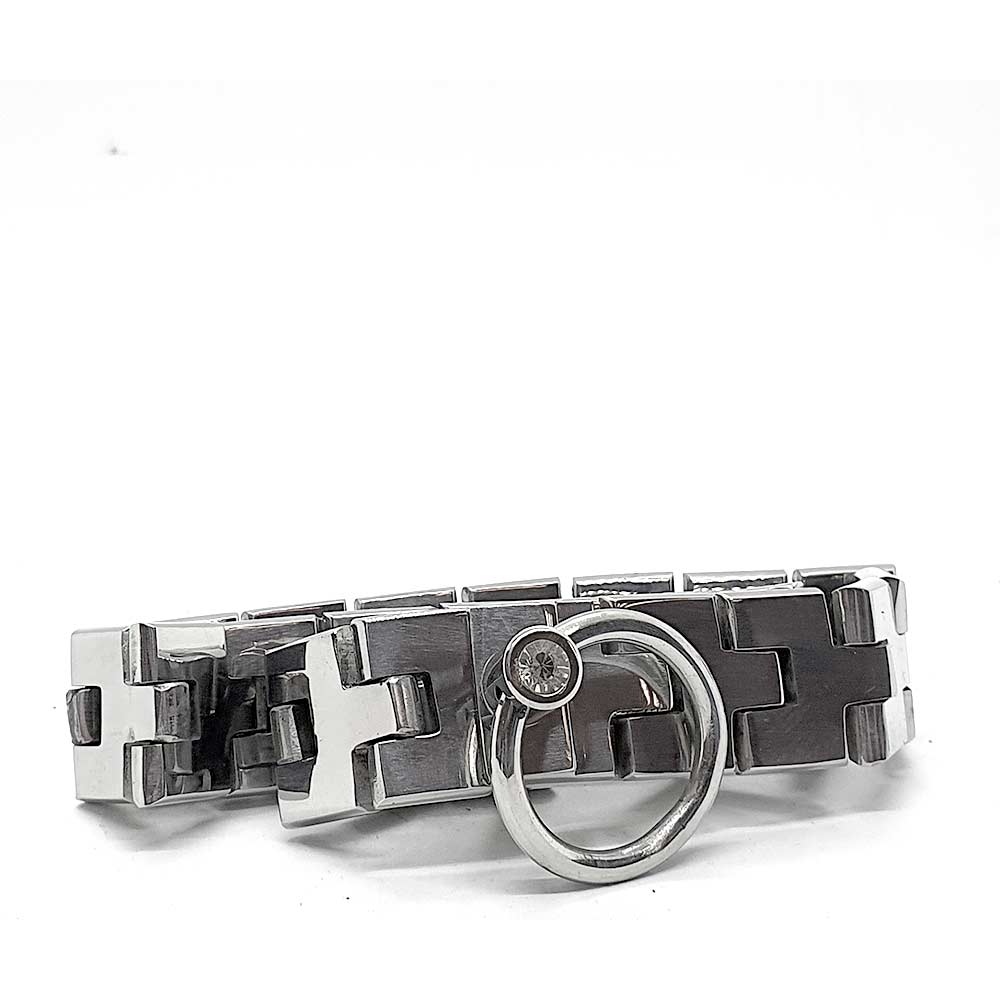 Black Label Stainless Steel Necklace with Gemstone Clasp Silver