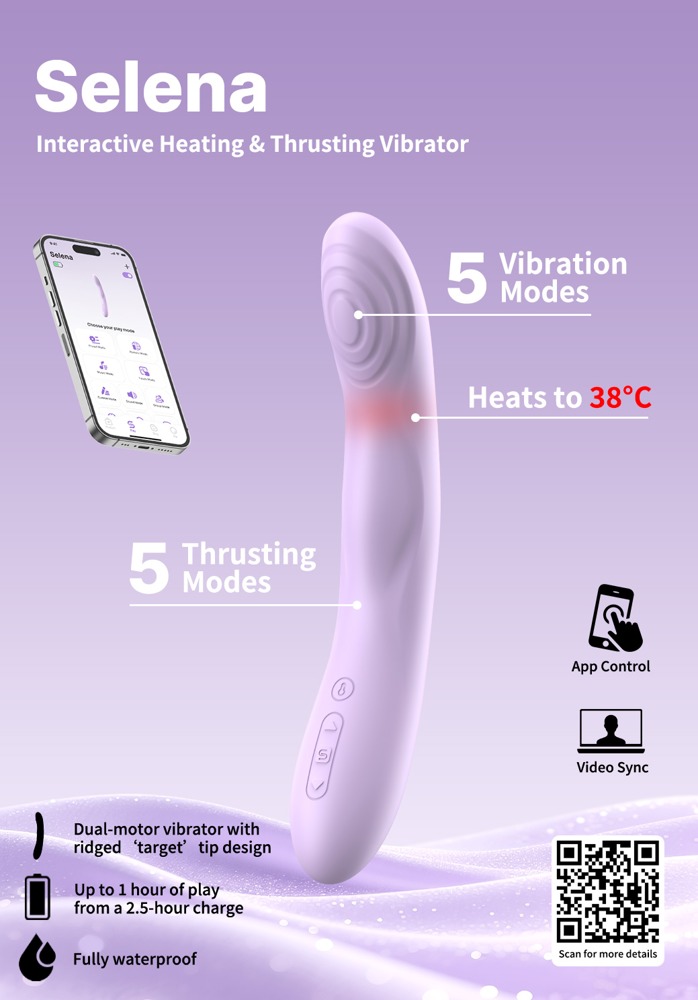 Ergonomisch perfekt gebogener Heating & Thrusting Vibrator Selena von SVAKOM. Kombiniert in seinem abgeflachten Kopf intensive Vibrationen mit sinnlichen Stößen für eine einzigartige rhythmische Stimulierung. Sanfte Wellenstrukturen intensivieren zusätzlich die Berührungen. Dazu bietet die Wärmefunktion bis 38°C wohligen Komfort. Perfekt zur gezielten Lustpunkt-Stimulation innen und außen am Körper. Insbesondere G-Zone und Klitoris freuen sich über eine intensive Massage! Auch in Bad und Dusche, denn der seidig-softe Silikonvibrator ist wasserdicht.