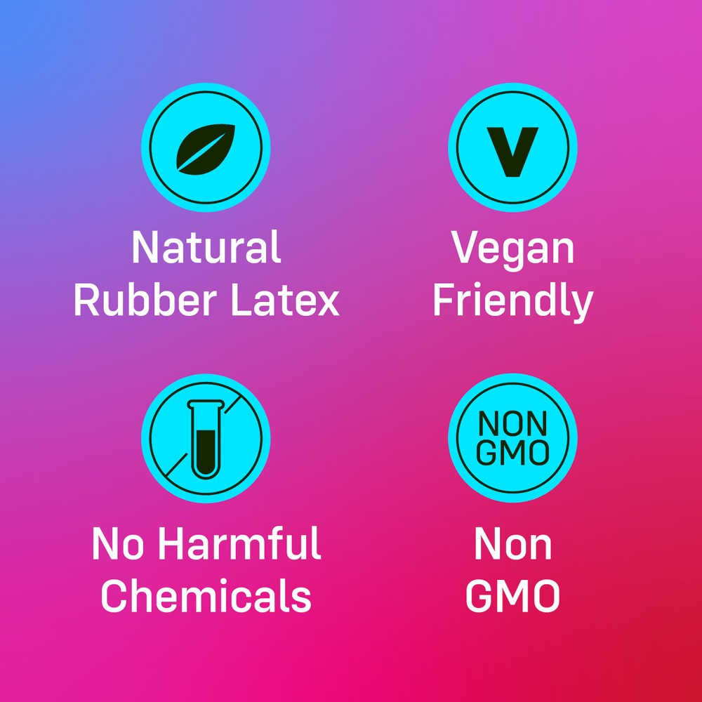 The colored condoms Tattoo Touch from ONE combine a textured surface with a special tattoo design. The large rib structures are not only eye-catching, they also provide additional stimulation. The contoured shape with reservoir ensures a comfortable, secure fit - the ultra-soft Sensatex natural rubberlatex a natural sensation of pleasure. Vegan and non-GMO-free. Moistened with silicone oil.