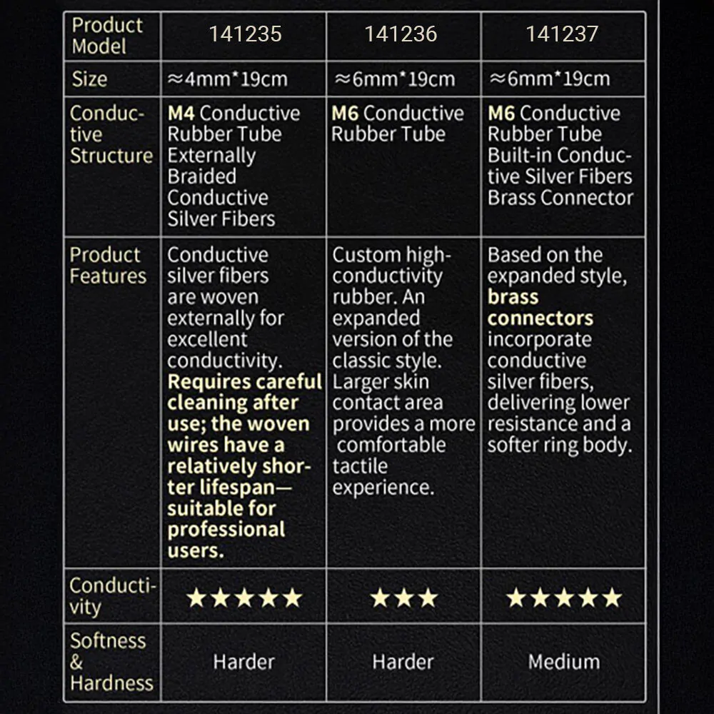 Gefertigt aus speziell entwickeltem leitfähigem Gummi, sorgen die Ringe für eine effektive Weiterleitung elektrischer Impulse. Die integrierte Konstruktion mit leitfähigem Kern reduziert den Widerstand deutlich und ermöglicht eine spürbar intensivere und stabilere Stimulation.