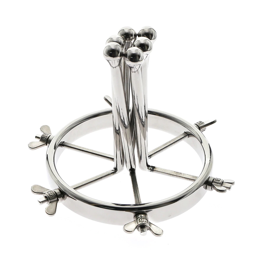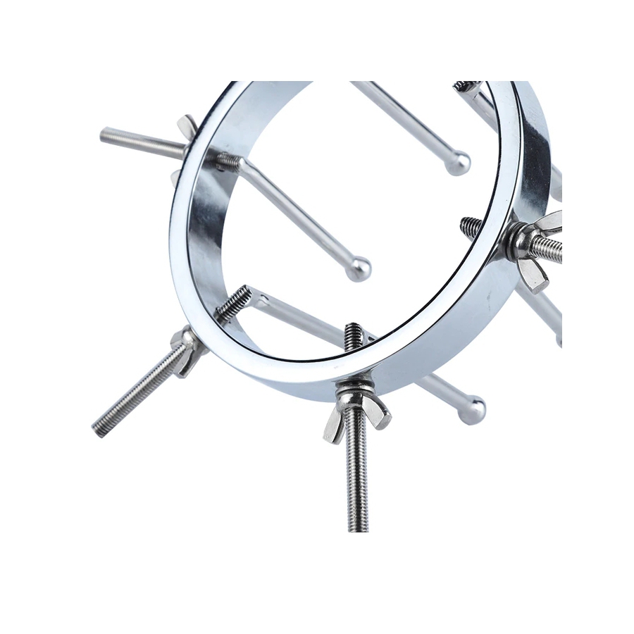 Der Analspreizer aus Metall 9,5 cm ist ein präzises Hilfsmittel für die kontrollierte Dehnung und Öffnung des Anus. Dank seines praktischen Schraubensystems und der sechs verstellbaren Metallstäbe kann die Öffnung schrittweise und sicher angepasst werden, was das Spiel für erfahrene Anwender komfortabel und kontrollierbar macht.