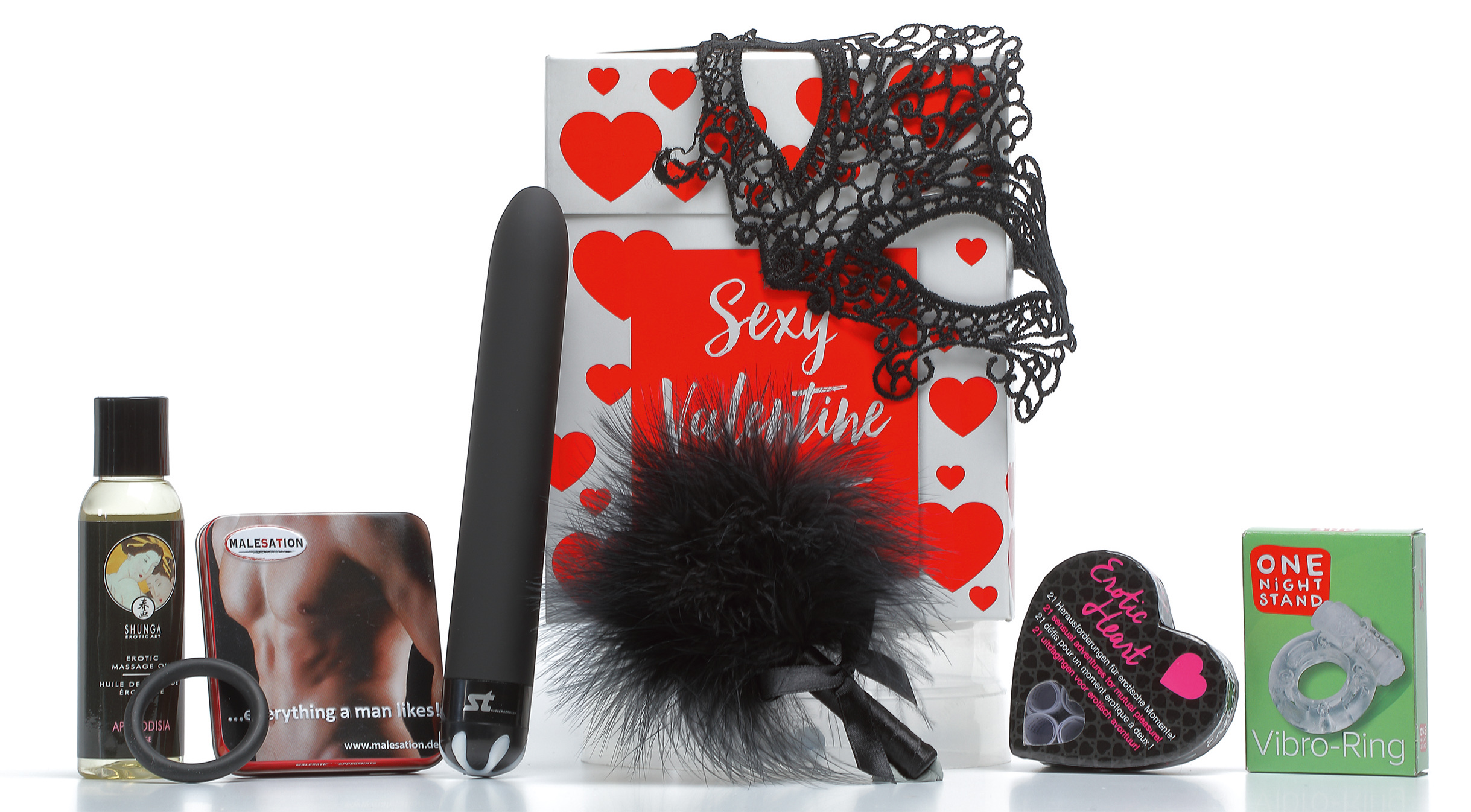 SHUNGA Massage Oil Aphrodisia 60ml, TEASE & PLEASE - Erotic Heart mini , ONE NIGHT STAND Vibro Ring, MALESATION Peppermints 45g.