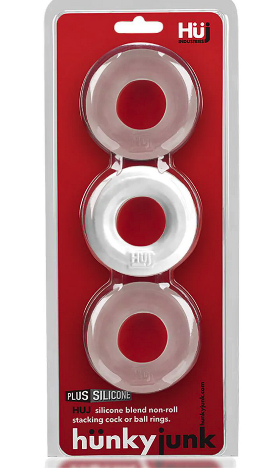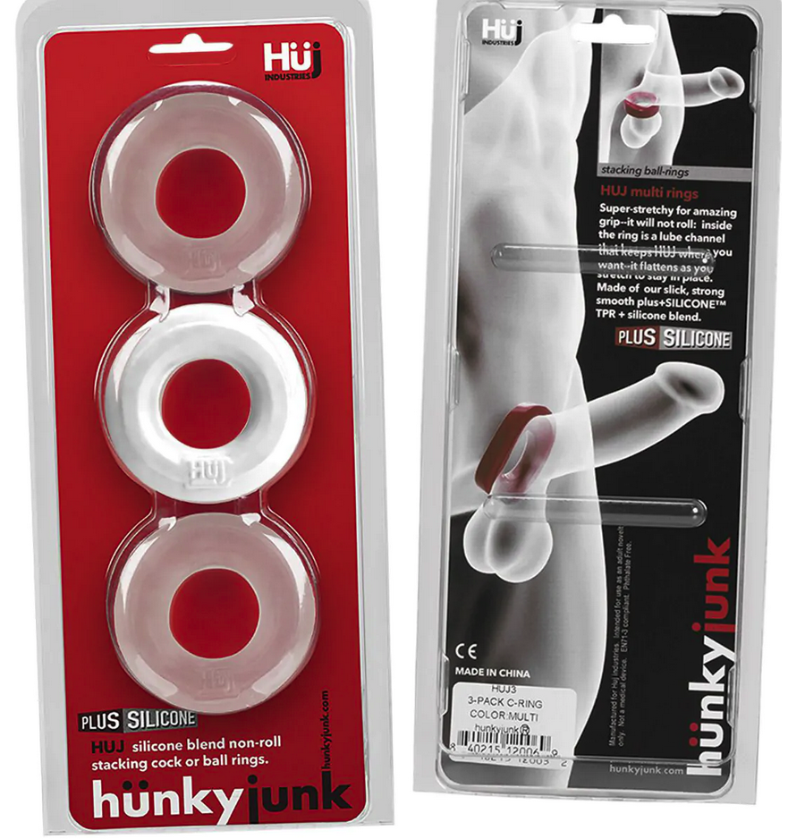 Er kann für einen engeren Sitz geschichtet werden passen, manche stapeln sie für allmähliches Hoden-Stretching, unser HUJ3 ist ein 3er-Pack C-Ringe für kreativeres Spiel.