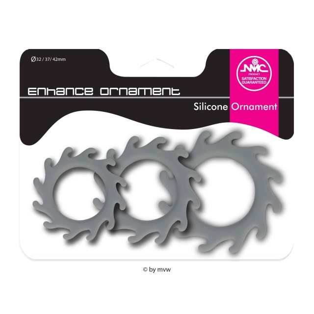 Das NMC Enhance Ornament Silikon-Ring-Set bietet längeren und intensiveren Genuss für Paare. Hergestellt aus weichem, dehnbarem Silikon, passt sich jeder Ring perfekt an und sitzt angenehm komfortabel – für ein sicheres und komfortables Tragegefühl.