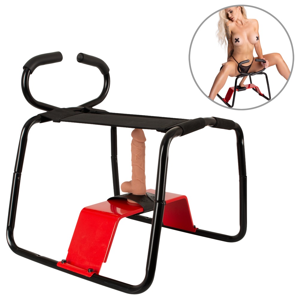 Ein besonderes Highlight ist der integrierte Halter für den mitgelieferten Dildo: Dieser wird sicher unter der offenen Sitzfläche fixiert und ermöglicht eine gezielte, komfortable Anwendung. Alternativ lassen sich auch andere Saugnapf-Dildos verwenden, wodurch der Stool vielseitig anpassbar bleibt.